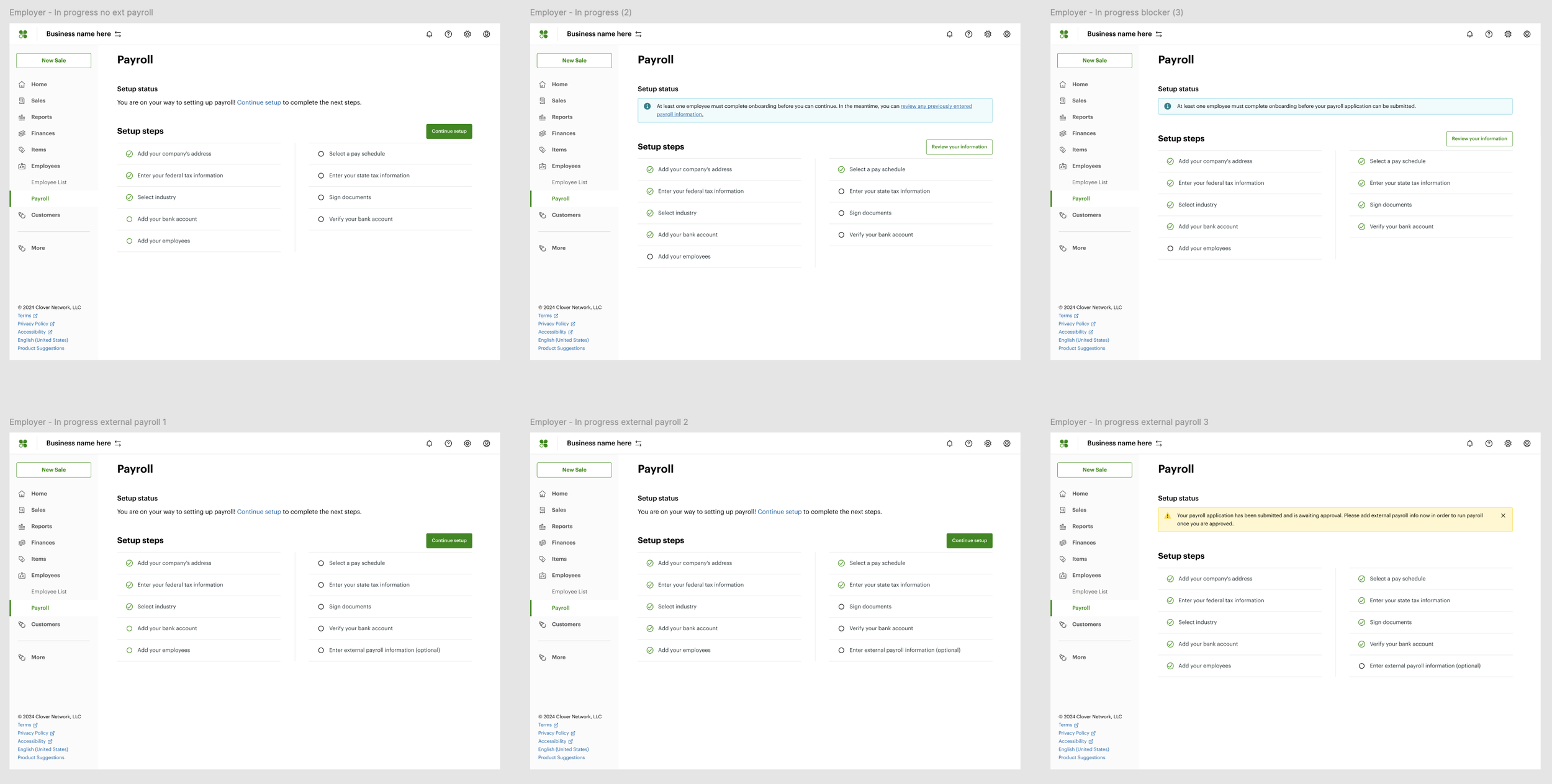 Clover wanted to provide a payroll solution for its merchants. In lieu of a native solution, Clover partnered with Gusto to provide a semi-embedded payroll solution that was easy for merchants to use and understand. The biggest challenge for this project was ensuring consistency between Clover and Gusto, even though they are separate product offerings.